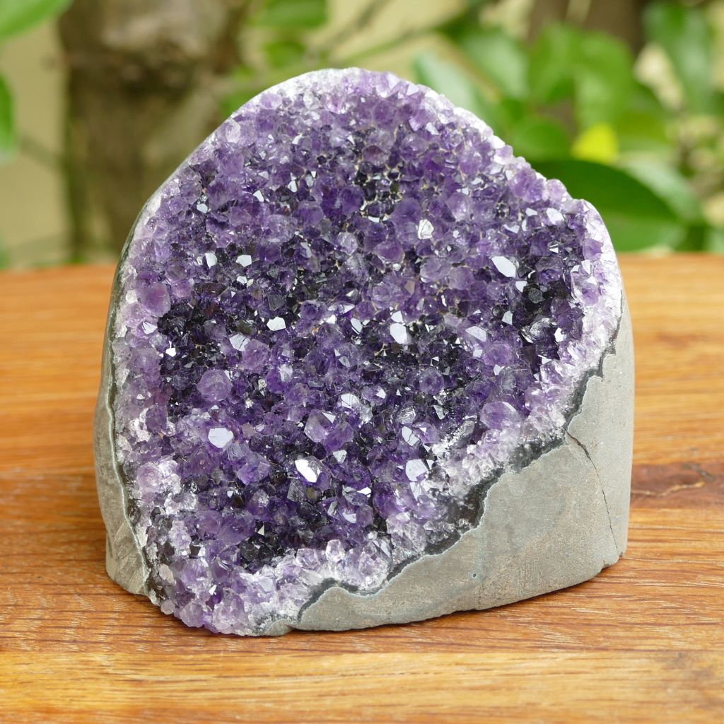 Unique Beauty: With a cut base for your display, this amethyst cluster's naturally formed geometric shapes catch the light beautifully, showcasing the unique characteristics of each amethyst stone.