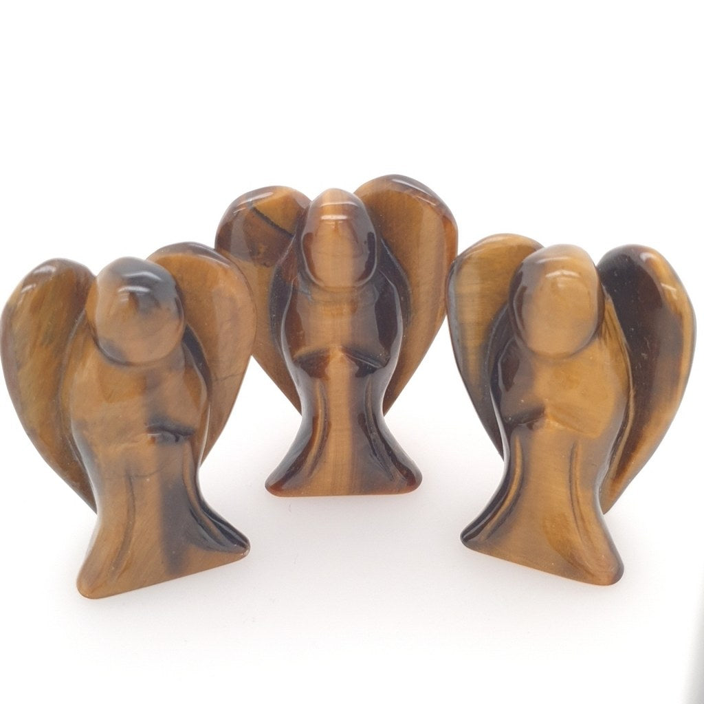 Please Note: We have a number of tiger eye angels in stock and have taken a photo of one similar to the one you will receive. As each tiger eye angel is carved from a natural stone it is important to understand each piece will vary.