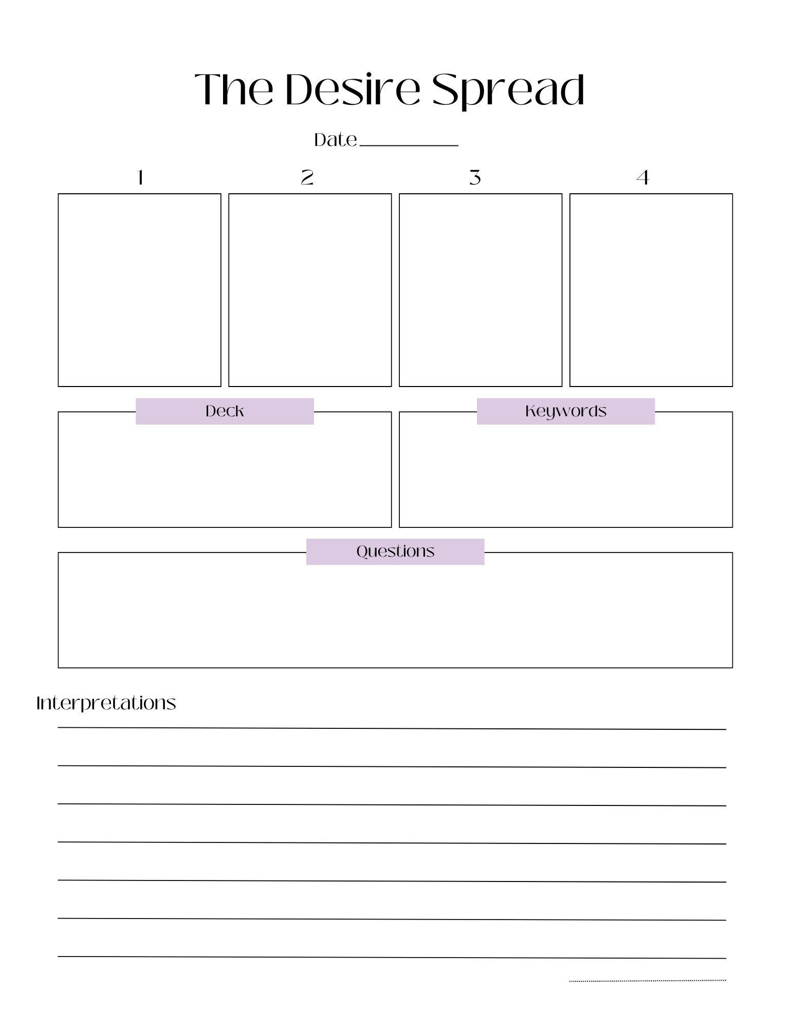 Daily & Weekly Tarot Spreads – Record your insights, interpretations, and reflections for a deeper understanding of your readings.