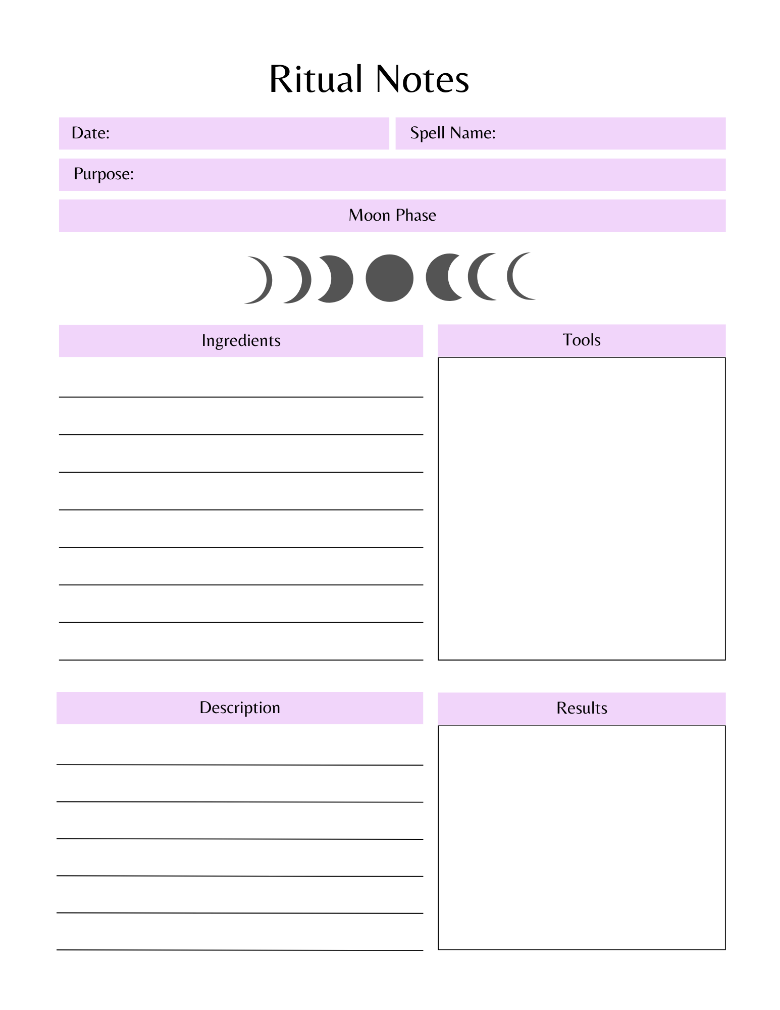 • Spell Journal – Keep track of your rituals, spellwork, and results.