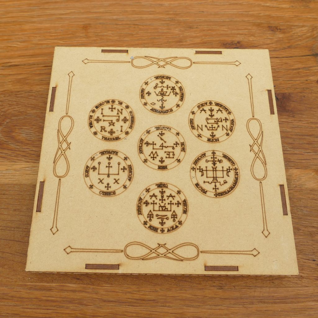 Engraving: Gold-coloured Archangel symbols for spiritual focus and intention