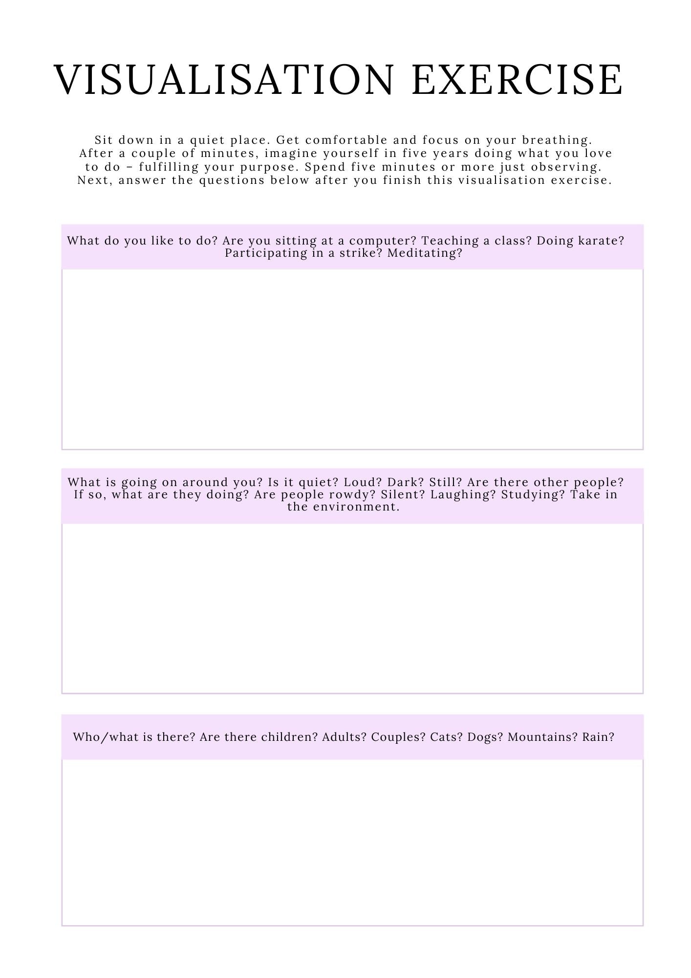 • Visualisation Techniques – Picture your ideal future and map out a clear vision of your passion.