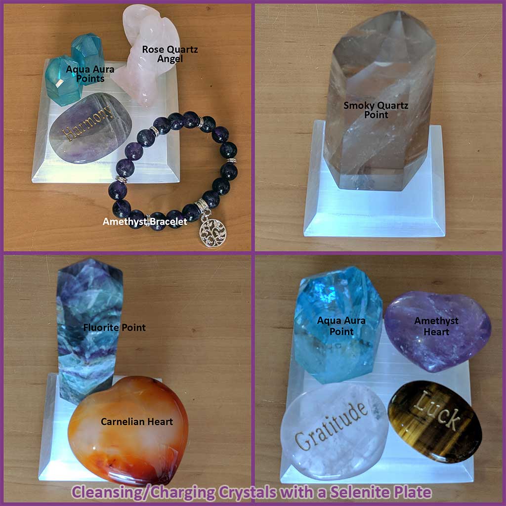 You can see in the images, we have some crystals placed on this selenite plate to give you an example of what you might like to do.