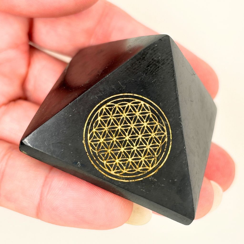 This Shungite Pyramid is a powerful yet understated piece, featuring a finely engraved Flower of Life symbol on the front. Thoughtfully shaped to help focus and direct energy, this pyramid is ideal for creating a grounded, balanced atmosphere in your home, workspace, or meditation area.