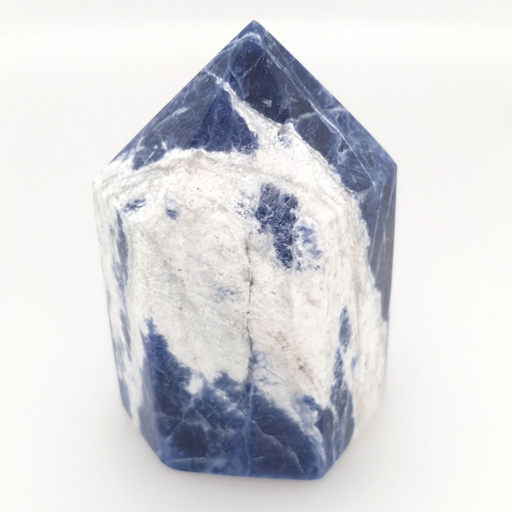 This beautiful Sodalite Point features deep navy-blue tones with natural white calcite veining, giving each piece its own unique character. Polished into a point, this crystal is ideal for directing and focusing energy, making it a wonderful addition to meditation spaces, desks, or crystal grids.